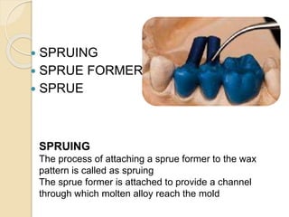 Investing may also involve buying a. Define dental casting investment. Using a bunsen burner the dental technician melts wax and applies it to the prepped tooth stump.